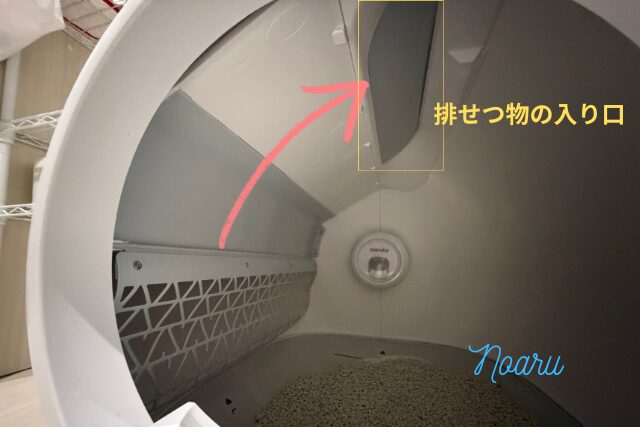 我が家ではmiruto製品を使用していますが、自動処理で回転するとき、排せつ物が入るまでのドーム内の壁(矢印部分)が匂うことがあります。
